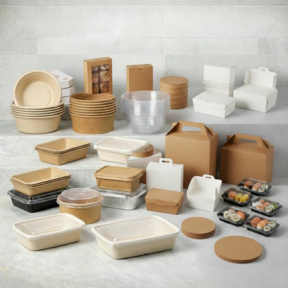 Cajas, bolsas, vasos, envases y accesorios para despacho. Stock, asesoría y entrega rápida.